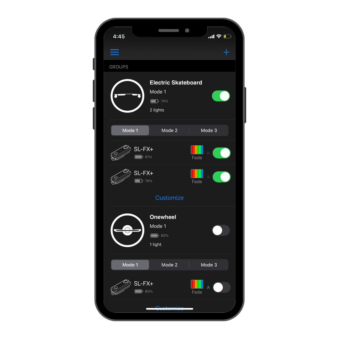 Group multiple lights together to sync light modes and control them with the app or any light in the group.