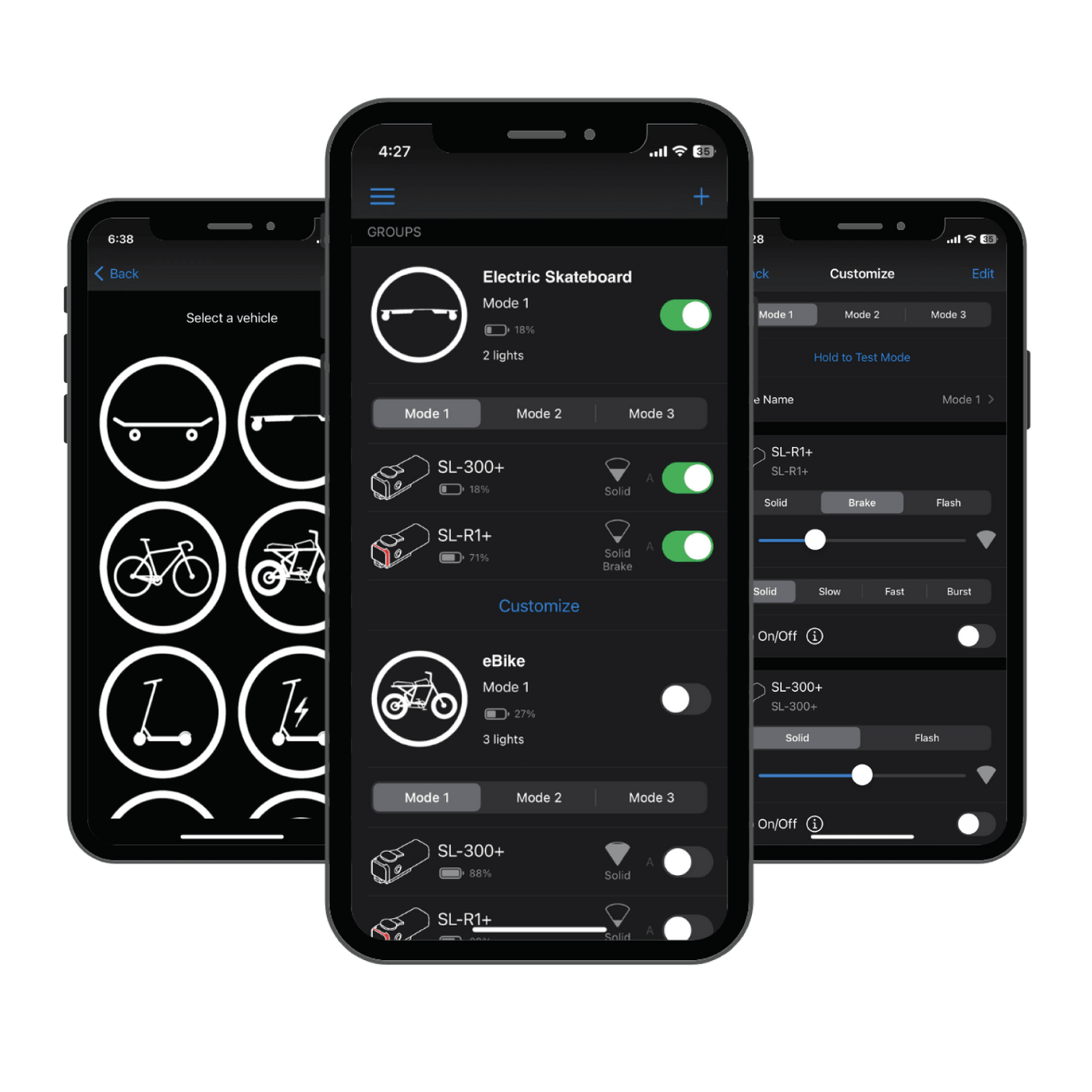 - 4 Brake Modes (SL-R1+ only): Constant/Brake, Slow Flash/Brake, Fast Flash/Brake, Burst Flash/Brake