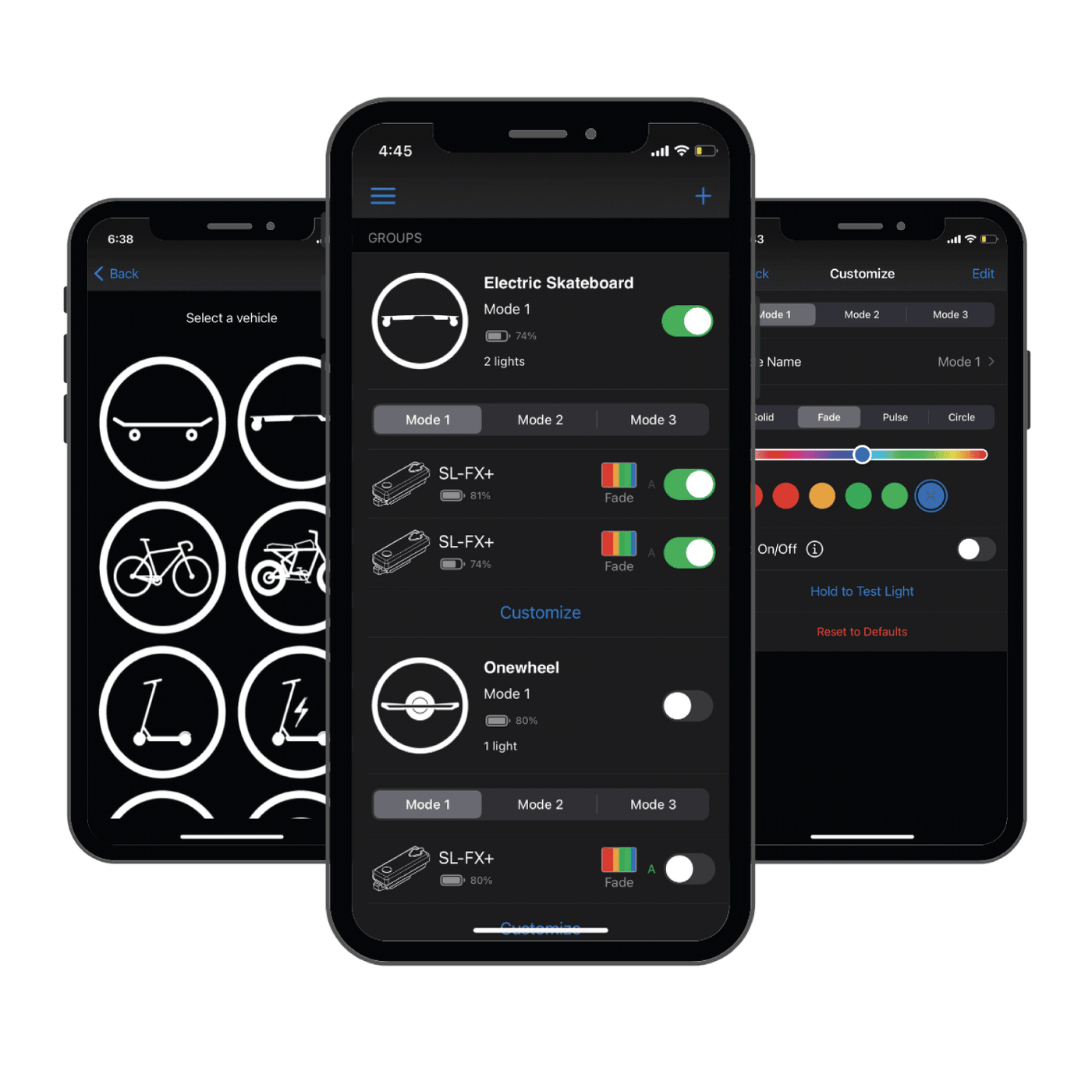 Pair to the app to customize colors and light modes from over 10,000 combinations. Check your battery status and adjust the brightness to increase battery life to your ride length.